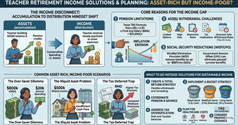 Teacher Retirement Income Problems: When Assets Don’t Generate Enough Money Many teachers face a harsh reality when they retire: having significant assets but struggling to generate enough monthly income to maintain their lifestyle. This phenomenon, often called being “asset-rich but income-poor,” affects educators across the country who discover their retirement savings don’t translate into the […]