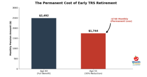 The financial consequences of early TRS retirement are substantial and permanent. Unlike temporary penalties that might be lifted at a certain age, the reductions applied to your pension for early retirement last for your entire lifetime.