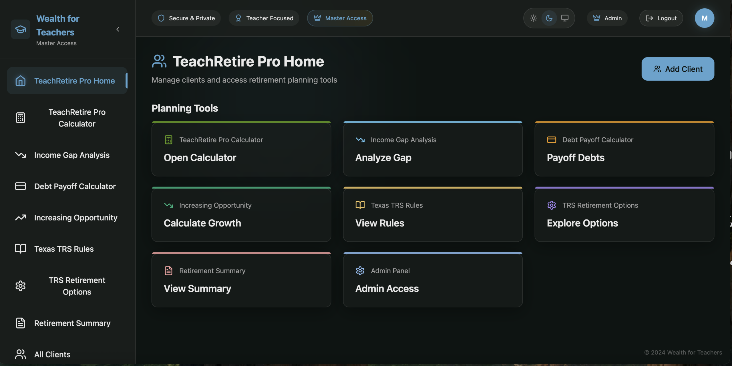 Built specifically for Texas teachers using TRS retirement rules.