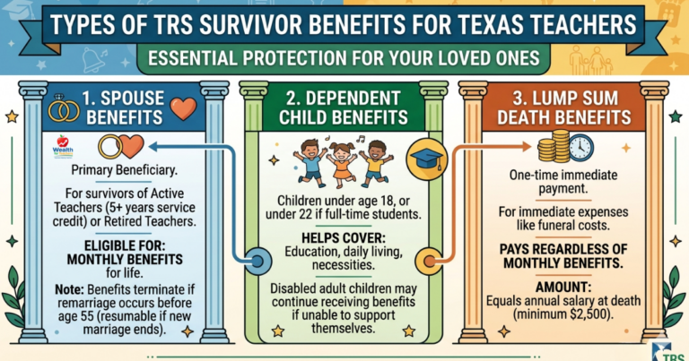TRS Survivor Benefits: Essential Protection for Texas Teachers’ Families When you dedicate your career to educating Texas students, protecting your family’s financial future becomes just as important as shaping young minds. The Teacher Retirement System of Texas (TRS) recognizes this responsibility and provides survivor benefits designed to support your loved ones if something happens to […]